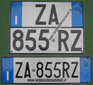 | 1998-Today, Black/refl white with refl white/blue, ZA = Reserved for two-line plates, Rear 297 x 213 mm, Front 360 x 109 mm |