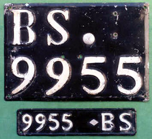 | 1959-64, White/black with the white/red tab, Rear 275 x 200 mm, Front 267 x 62 mm |